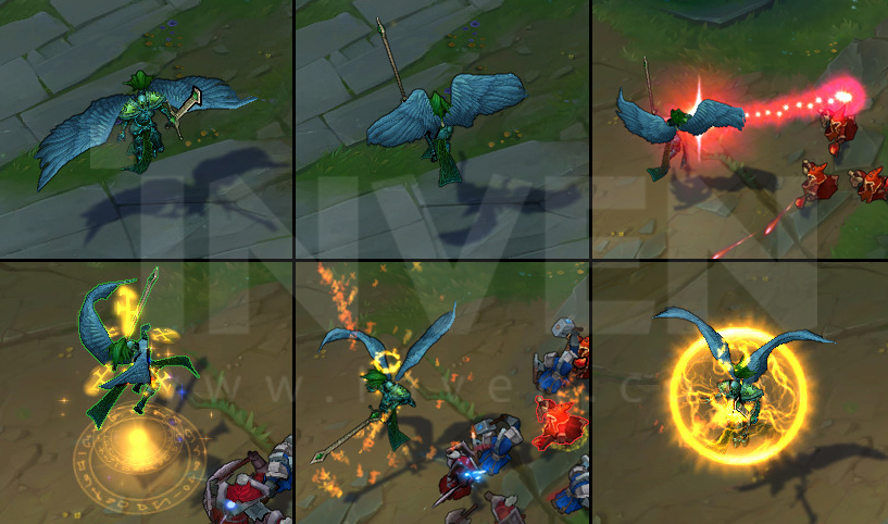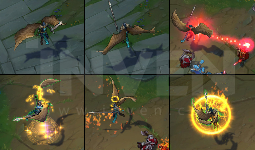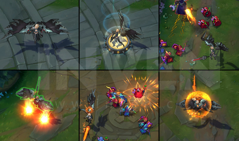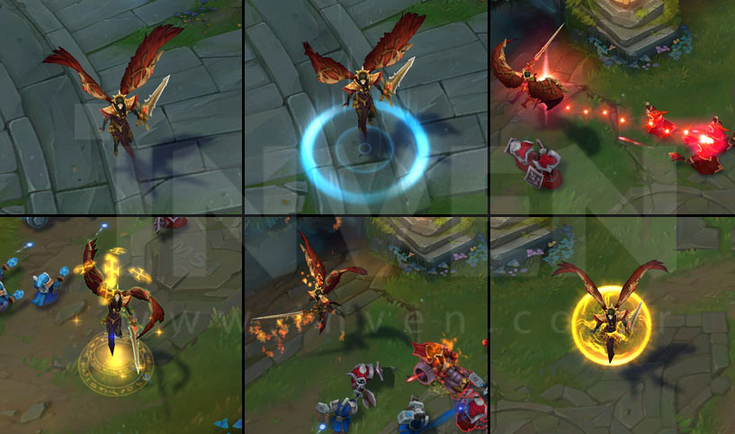 [ Passive ]Kayle's attacks are empowered by the heavens as she levels up and spends skill points. Her wings are lit aflame as she progressively gains Attack Speed, Move Speed, Attack Range, and waves of fire on her attacks.