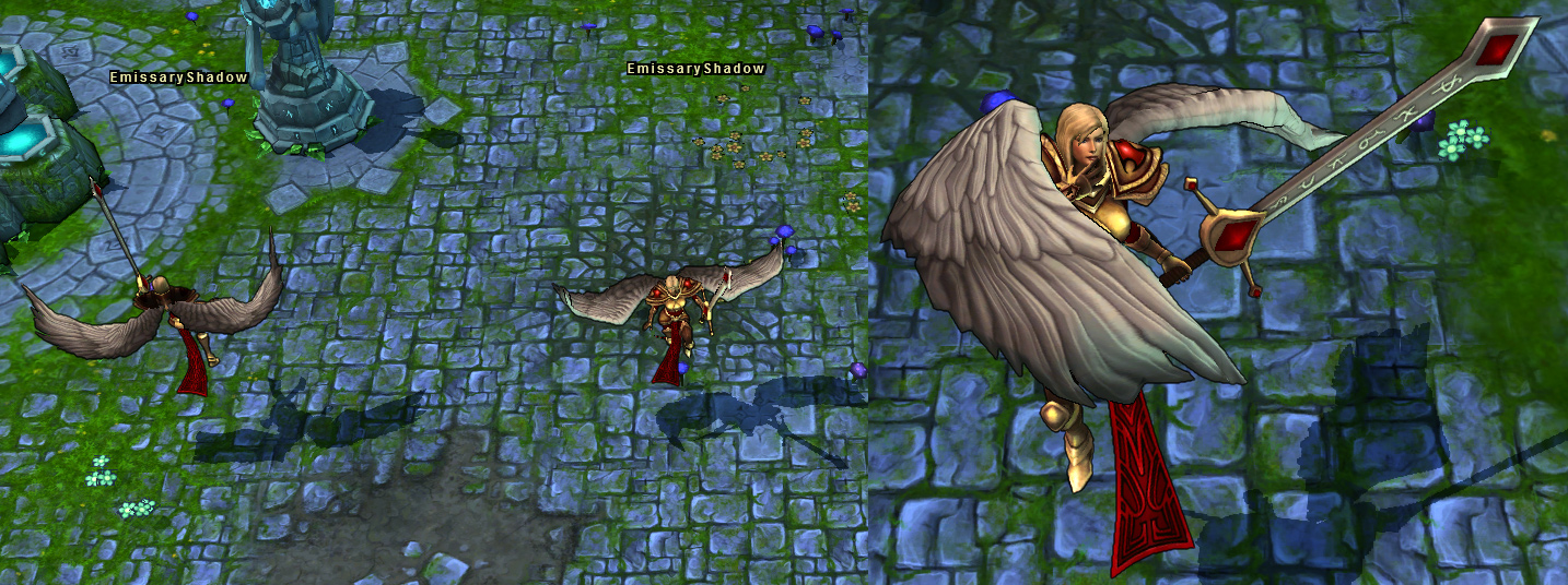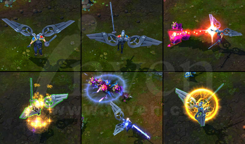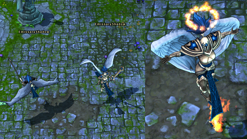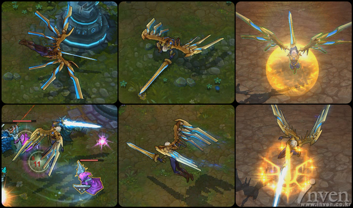 Kayle makes an ally invulnerable and calls upon former Aspects of Justice to purify the area around her target with a holy rain of swords.