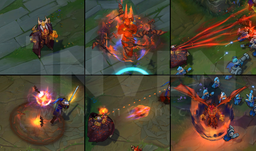Swain transforms into a demon and drains health from nearby enemy champions, minions, and neutral monsters. Swain can cast Demonflare to decimate and slow nearby enemies with a nova of soulfire. This form is indefinite as long as Swain drains enemy champions.
