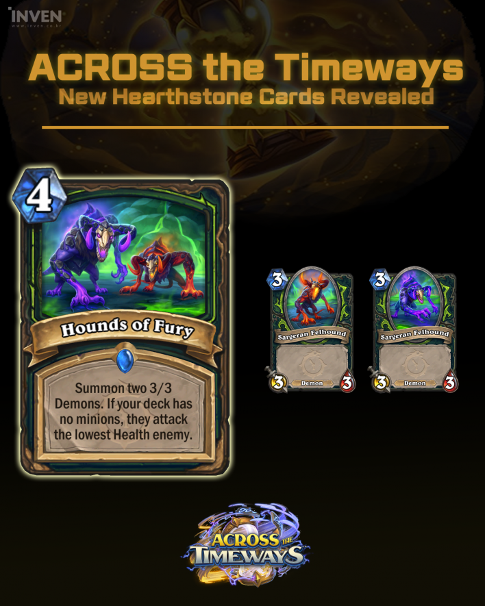 A new archetype for Demon Hunter appears that prioritizes no minions. All the Demon Hunter cards in Across the Timeways share a unique condition: that your deck has no minions. This mechanic calls for a brand-new way to build Demon Hunter decks focused entirely on spells.