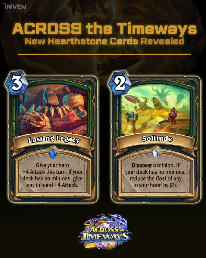 Lasting Legacy – Effect: Give your hero +4 Attack this turn. If your deck has no minions, give a minion in your hand +4 Attack.