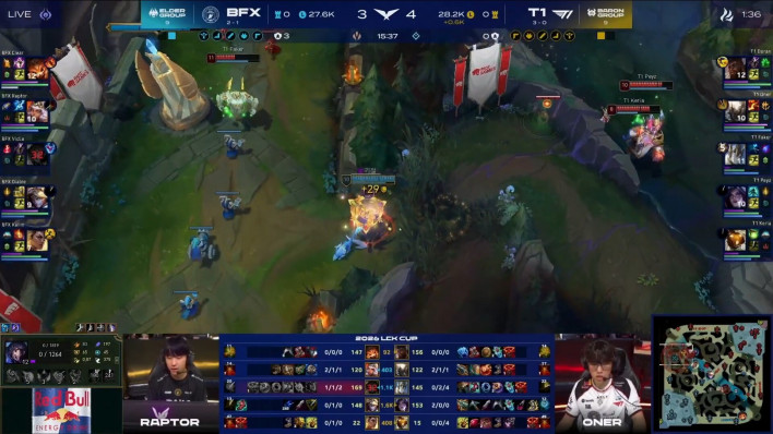 T1 defeated BNK FearX in a full five-game series on Saturday, the 25th, in Match 1 of Group Battle Week 2 Day 5 at CHZZK LoL Park in Jongno. With the win, T1 kept their perfect 4–0 run in the Baron Group—matching Gen.G’s unbeaten record—and, with Nongshim RedForce, DN SOOPers, and OKSavingsBank BRION stumbling, significantly helped bring the Baron Group’s win points level with the Elder Group.