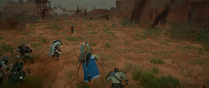 Take the square button on the DualSense, for example. It governs interaction actions such as picking up objects and operating mechanisms, but also jumping, assassination, and greeting. The problem is that the game’s determination of which of these actions to perform depends on the player’s camera angle and on the L1 highlight system, which leads to endless misinputs. You try to greet someone and instead swat a gnat flying in front of you; you attempt an assassination and Kliff instead does a little hop behind the enemy; you mean to pick up an item on the ground and suddenly end up bowing to the person standing in front of you. None of these are rare occurrences.