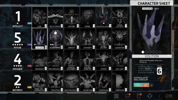 There is the Intellect category, which helps you notice details and deduce facts; the Psyche/Sensory category, which helps you read people and navigate conversations; and categories focused on raw physical power or quick reflexes.