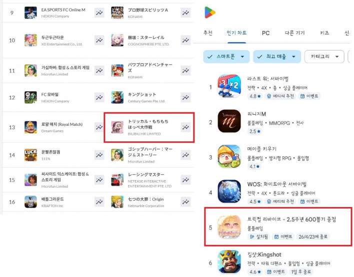 In Korea, the game hit 5th place in the Google Play Store's top-grossing games chart during its 2.5-year anniversary event. This marks a new personal best for the title, surpassing the 6th-place record set during a previous anniversary event.