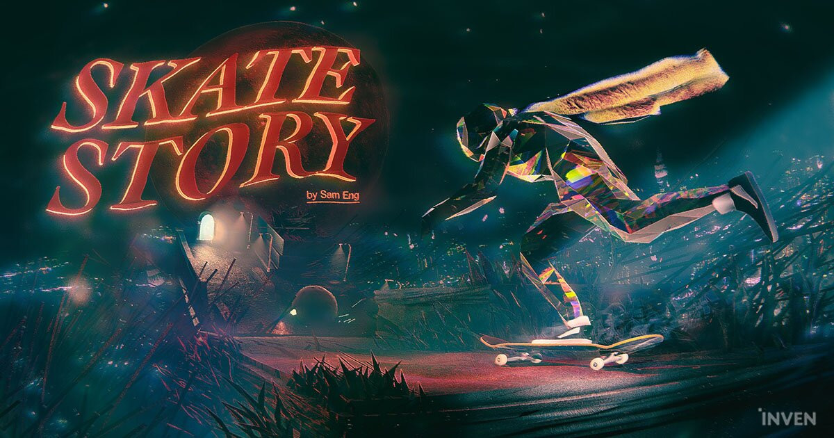 Published by Devolver Digital and officially released last December, Skate Story is a skating game that developer Sam Eng worked on alone for over five years. In the game, players take on the role of a demon made of glass, tasked with fulfilling a contract with the devil: skate to the moon and swallow it. Along the way, players perform various skating tricks, grow as a skater, and even save suffering souls.