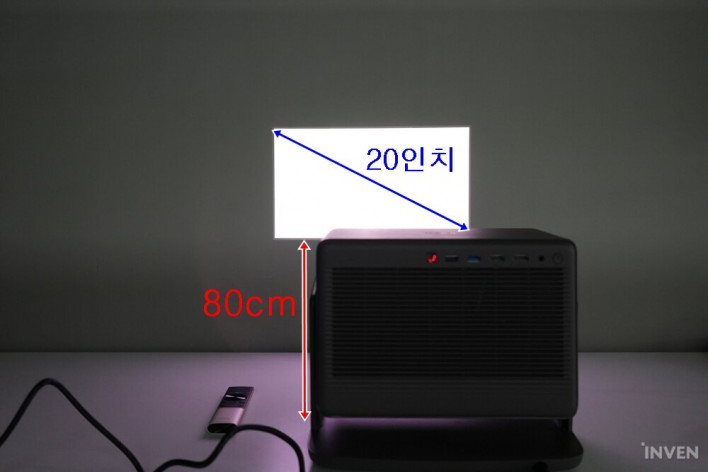 ▲ Set up at the minimum distance for optimal image quality for testing. Distance between wall and projector is 80cm