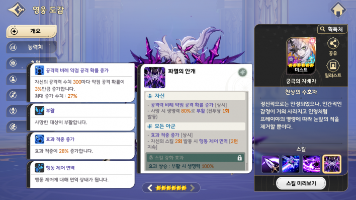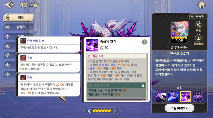 Mist’s Instant Death has a unique property: when a target is in a state of Fear, the Instant Death effect becomes unremovable. As mentioned, Fear is primarily triggered via her second skill, though her basic attacks can also target a single enemy once her skills are upgraded. With her intriguing combination of Fear and Instant Death, Mist is expected to be a hero capable of creating significant variables on the battlefield.