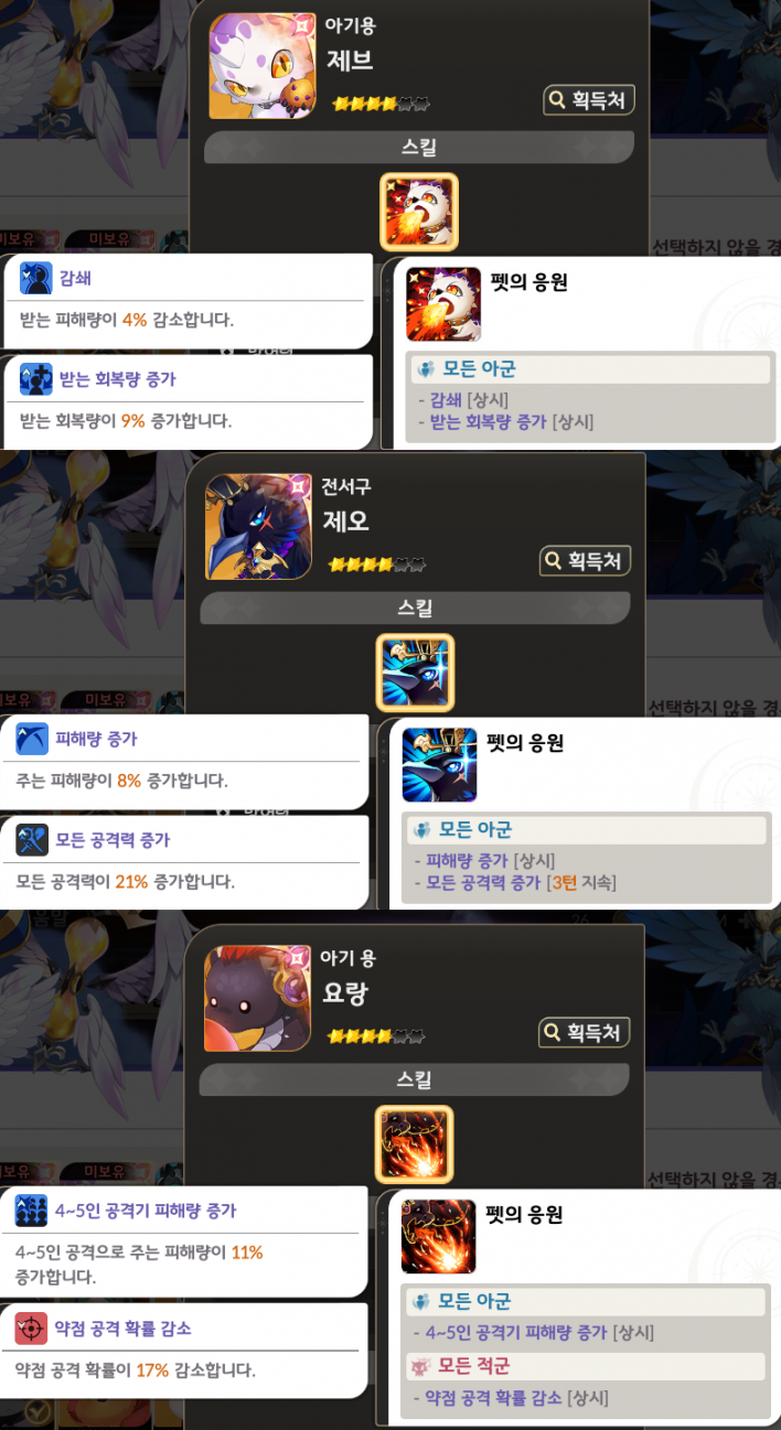 Players can now encounter new Legendary-grade pets: Zeo, Yorang, and Zeb. Zeo is a damage-focused pet that increases all allies' damage and provides an option to increase all Attack stats once per round for 3 turns. Yorang increases damage for 4-5 target attacks, but more interestingly, it can permanently reduce the Weak Point Attack probability of all enemies. Zeb is a survival-specialized pet that provides 'Decay' and increased healing received, helping to improve team sustainability.