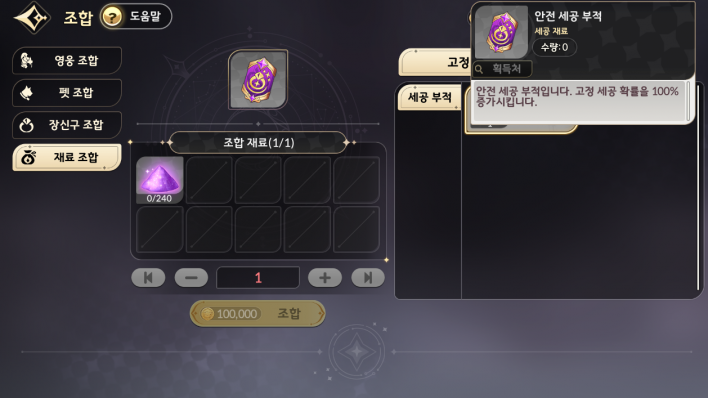 An accessory stabilization crafting system has arrived. If a fixed craft using a Legendary-grade accessory as material fails, you receive Crafting Powder. Once you accumulate 240 units, you can create a Safety Crafting Charm in the material combination menu. The Safety Crafting Charm guarantees a 100% success rate for fixed crafting.