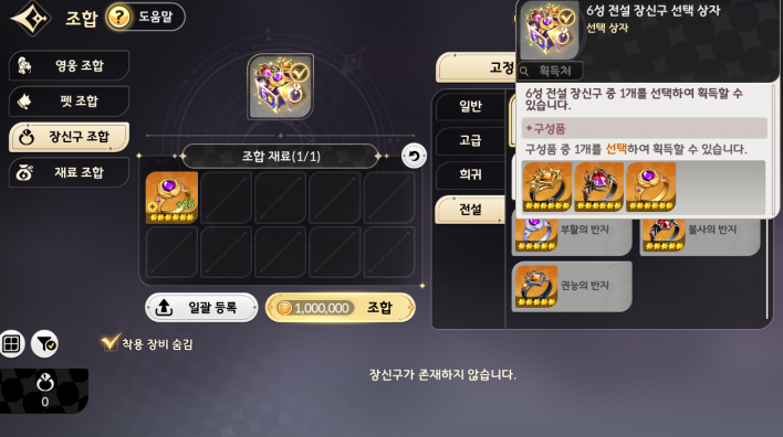 If you own a 6-star Legendary accessory but want a different type, visit the combination menu. Once per month, you can use a 6-star Legendary accessory as material to exchange it for a 6-star Legendary Accessory Selector box.