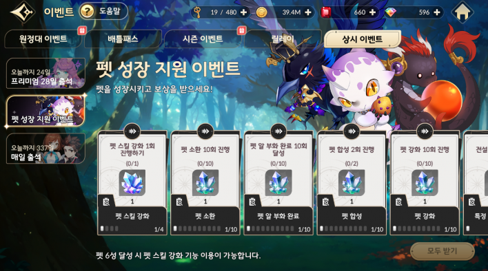 The Pet Growth Support event is also available. Hatching, enhancing, synthesizing, and summoning pets will grant Normal Skill Enhancement Stones, while enhancing pet skills will provide Shining Skill Enhancement Stones (up to 4). Finally, a Growth Expedition event has opened alongside the new territory expansion. Players can naturally earn rewards by enjoying in-game content such as Dragon Claw Land adventures, raid participation, equipment enhancement, and the Arena.