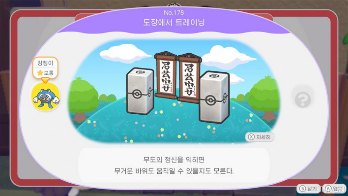 New features, convenience elements, and recipes that open up just when the game progress feels blocked or frustrating give the player a positive signal that the game is being played smoothly. In fact, the developers are inducing this by giving major guidelines. Also, the overall composition of the game makes it easy to induce the progress of play because the core loop of the game—creating habitats, building relationships with Pokémon, learning skills, or raising the village grade to move to new habitats or new areas—is clear.