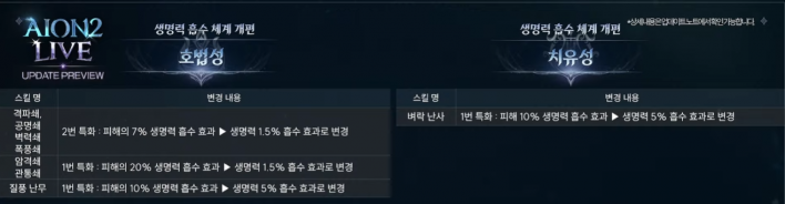 Health recovery balance is undergoing a major adjustment. The life steal mechanism has been changed, and recovery potions now include an additional effect proportional to maximum HP. Armor breakthrough now grants a 1% increase in HP per stage, and the life steal reduction debuff in Transcendence and Sanctuary has been removed. Overall, the life steal effects of individual class skills have been reduced.
