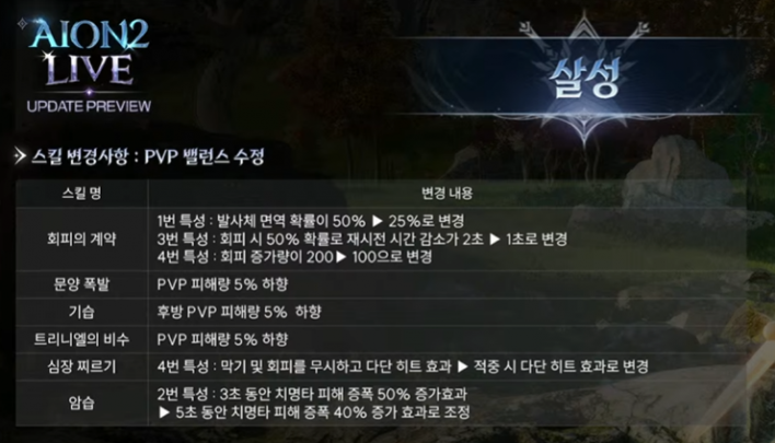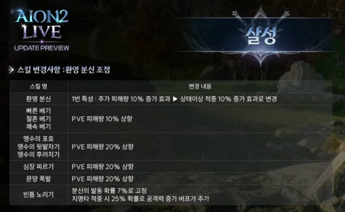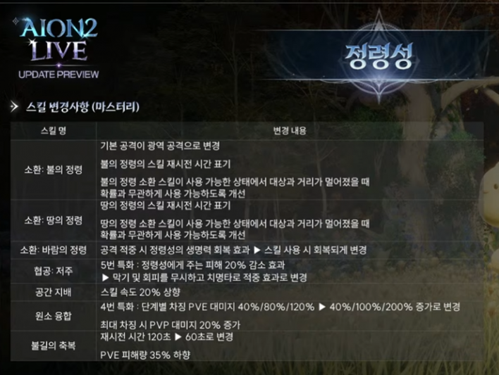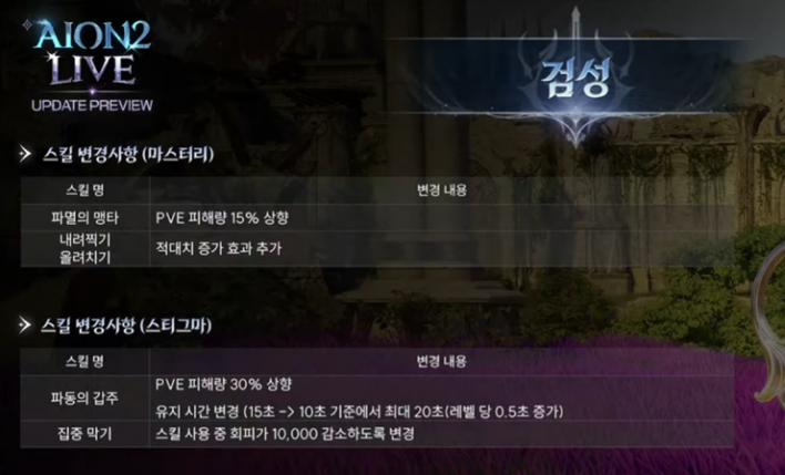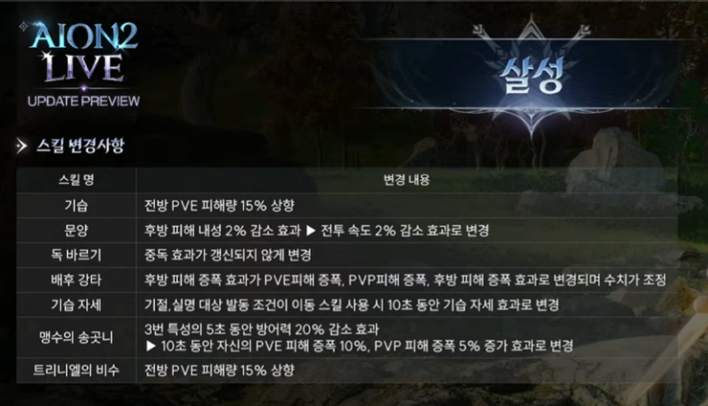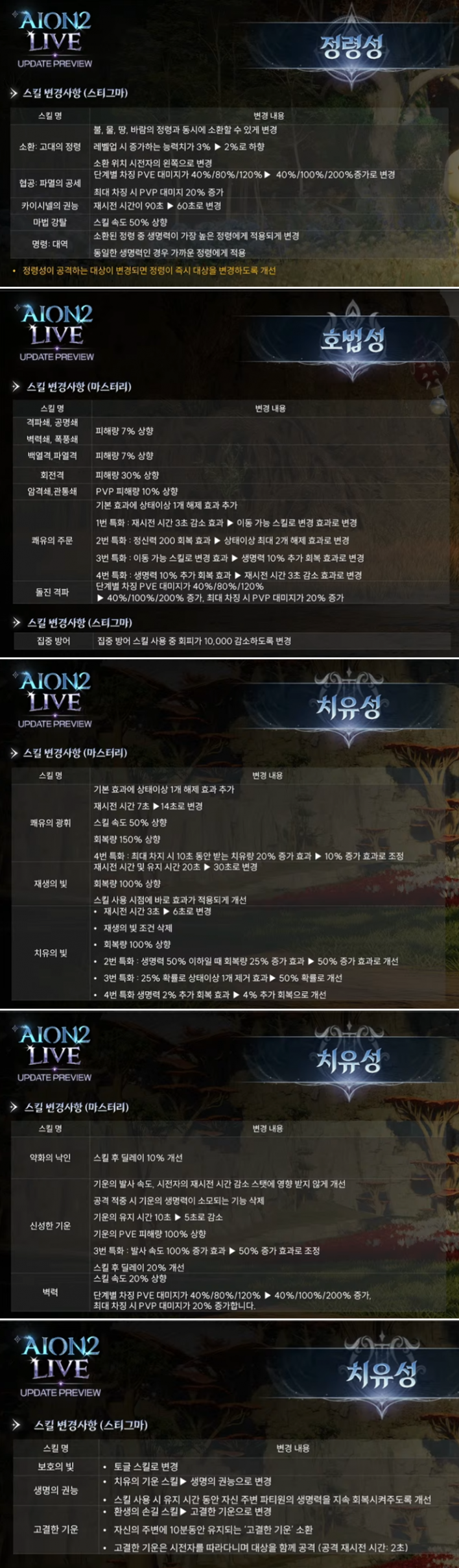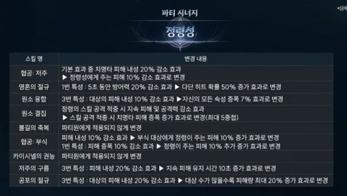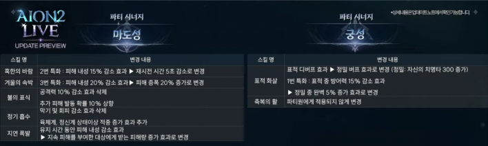 Party synergy for each class has also been overhauled. For damage-dealing classes—Assassin, Ranger, Sorcerer, and Spiritmaster—skills that previously affected party members have been changed to apply only to the user, or their effects have been replaced. For other classes, party synergy has been strengthened. To maintain performance following these synergy changes, overall skill buffs have been implemented.