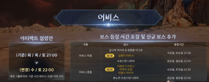 - Abyss Corridor changed to a solo map (monsters placed only in the center) → Entry time reduced to 2 minutes 10 seconds and rewards increased