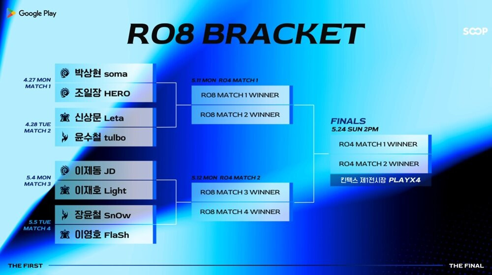 Yoon Soo-chul and Shin Sang-moon, who have been causing a stir this season as part of the so-called 'Tier 4 rebellion,' will meet in the quarterfinals, ensuring one of them will advance to the semifinals and contend for a seed. Meanwhile, the Jang Yoon-chul vs. Lee Young-ho matchup is expected to be a premier Protoss vs. Terran clash that many fans have been anticipating. The Google Play ASL Season 21 quarterfinals will be held on April 27, 28, and May 4, 5.