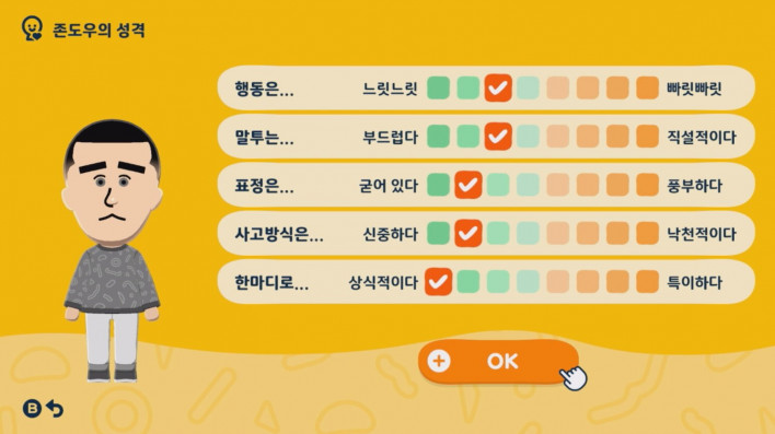 If you’ve played the previous title, you’ll immediately understand why I brought up MBTI. The game begins after you name your island and start creating the Miis that will live there. While the customization doesn't offer the freedom to sculpt every detail, there is an unexpected charm in setting the basic facial contours and filling in the rest as you please.