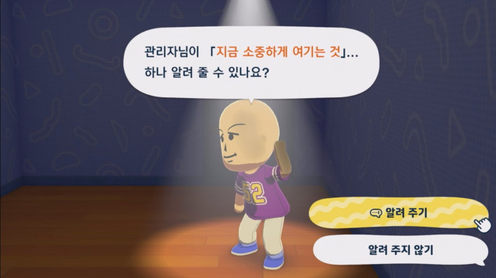 In fact, as my MBTI suggests, I am an extreme introvert, so I find small talk quite daunting. I said I fluctuate between P and J, but I’m really a P. I only put on the 'J' mask when things are at a standstill and someone needs to take charge to keep things moving. I’ll draft a half-baked plan, lead tentatively, and then hand it off as soon as someone more capable appears. This might mean I’m not well-suited for systematic simulation games, but regardless, 'Tomodachi Life' makes me want to just watch and gradually find my rhythm.