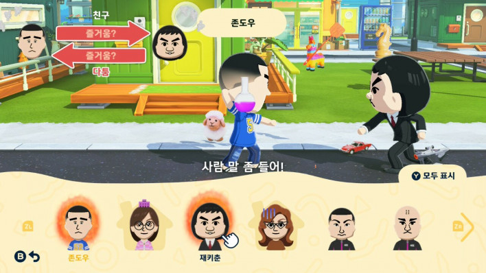 Instead, 'Tomodachi Life' is a game that spreads small, observational joys, and its design excels at that. Between the absurd, pure-hearted TTS dialogue and the unpredictable interactions of these 'pure souls,' you get the same appeal as a reality show. You can intervene to create certain scenarios, only to have them fall apart, forcing you to find new ways to steer the narrative. Or you can create your own memories by giving them items and watching them play out bizarre skits.