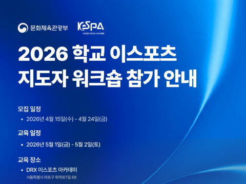 Source: Korea e-Sports AssociationThe Korea e-Sports Association (KeSPA) is accepting applications until April 24 for the '2026 School Esports Instructor Workshop,' aimed at traini...