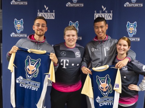 A Mountain Dew AMP Game Fuel student Instagram challenge brings German gamers to campus for an in-person visit.CANTON, NY (12/10/2019) Two professional League of Legends players and their manager from