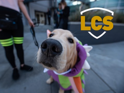 Photos from the Wag and Walks LCS TAILgate, featuring Puns, Appa, and other Rioter doggos