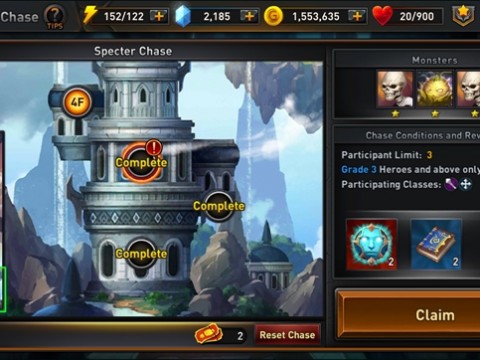 The Specter Chase is a mode in which players defeat enemies on different floors of a tower. Each floor has conditions of hero placement. This mode can only be played by players who are above rank 30 a