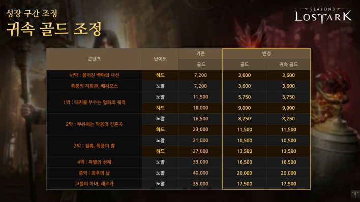 Meanwhile, bound gold in end-game content will be adjusted. For the Kazeros Prologue through Act 4, existing gold rewards will be maintained, but 50% will be converted to bound gold. This adjustment was previously announced in the last live broadcast. To compensate, some easing measures will be implemented, such as increasing the purchase limit for Level 7 gems to 11.