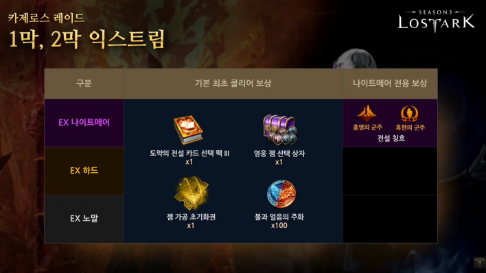Normal and Hard are designed to be enjoyed with relatively low pressure, similar to the difficulty of Thaemine Extreme, and offer one resurrection opportunity. Conversely, Nightmare is a challenging difficulty that rewards players with exclusive symbols and titles. Rewards can be obtained with a single clear within the period.