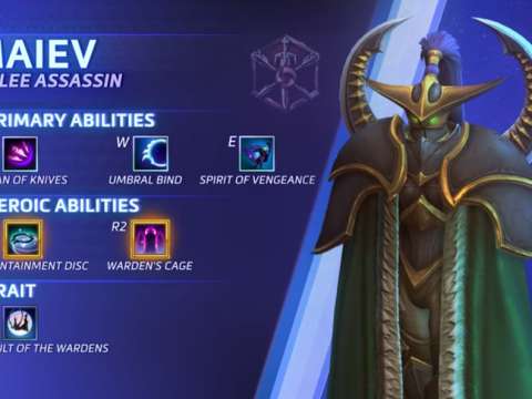 Maiev is mobile Assassin that excels against clustered enemies and prevents their escape. Her Fan of Knives ability is her primary damage tool and can be upgraded through her talents to deal percentage damage to enemy heroes.