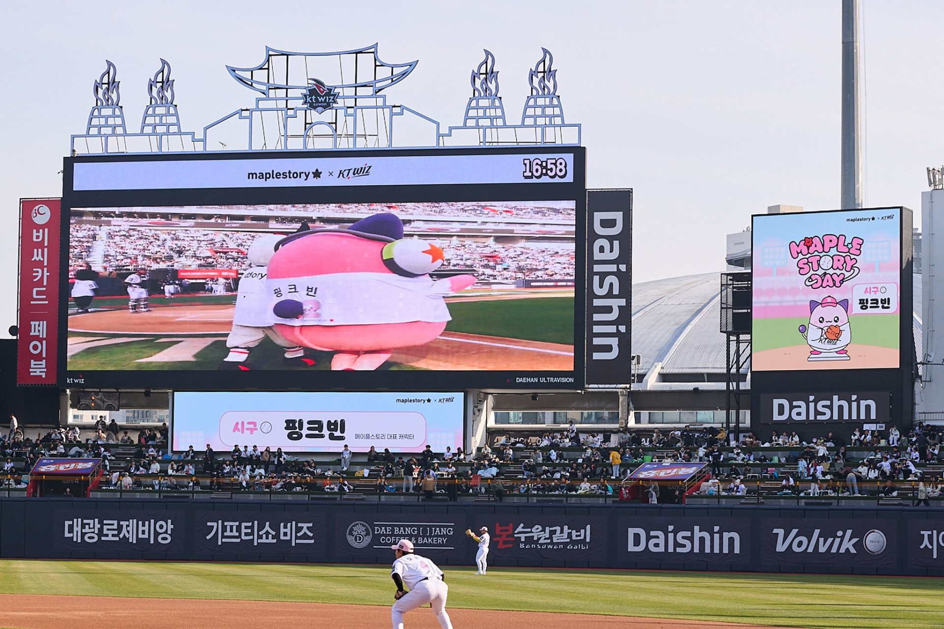 Held over the weekend of the 11th and 12th, 'MapleStory Day' marked the second consecutive year of collaboration between the game and the kt wiz baseball team. During the two-day event, kt wiz players wore uniforms featuring the iconic MapleStory character Pink Bean, and the character drew significant attention from the crowd by throwing the ceremonial first pitch at the game on the 11th.