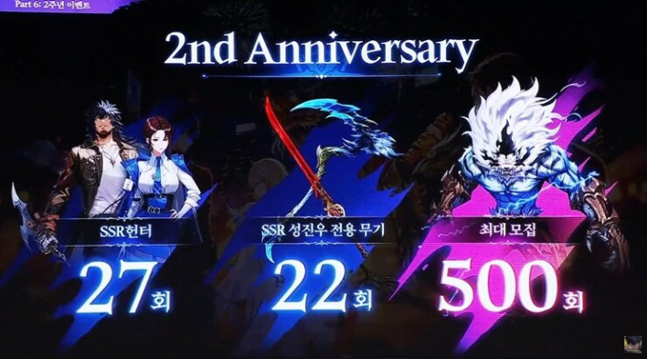 The 2nd-anniversary celebration includes events where players can earn numerous SSR hunters and weapons, as well as 500 recruitment tickets. Additionally, the 'Successor'—a being on par with Sung Jinwoo—will be introduced to the Sung Jinwoo mode, adding a new layer of gameplay. In June, a new class called 'Buster' will be added to create synergy with Stackers, with the 7-star hunter Liu Zhigang arriving as the first character of this class.