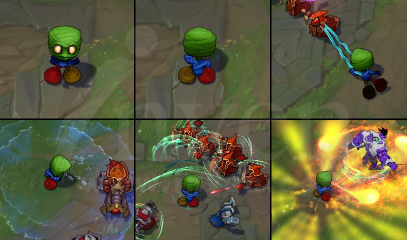 Legend claims that Amumu is a lonely and melancholy soul from ancient Shurima, roaming the world in search of a friend. Doomed by an ancient curse to remain alone forever, his touch is death, his affection ruin. Those who claim to have seen him describe a living cadaver, small in stature and wrapped in creeping bandages. Amumu has inspired myths, songs, and folklore told and retold for generations—such that it is impossible to separate truth from fiction.