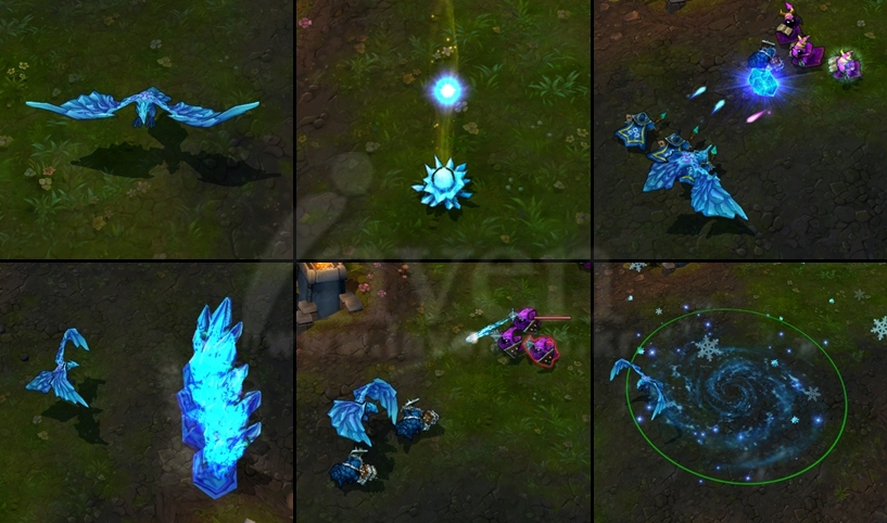 With a flap of her wings, Anivia blasts a freezing gust of wind at her target, dealing damage. If the target was recently hit by Flash Frost or damaged by a fully formed Glacial Storm, the damage they take is doubled.