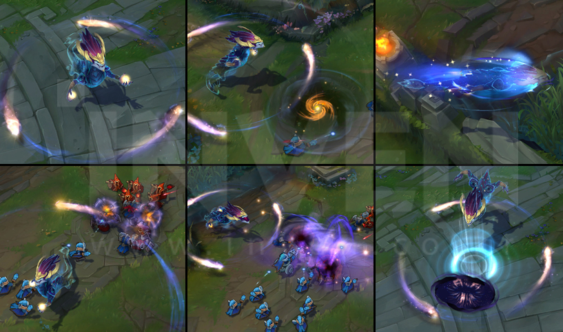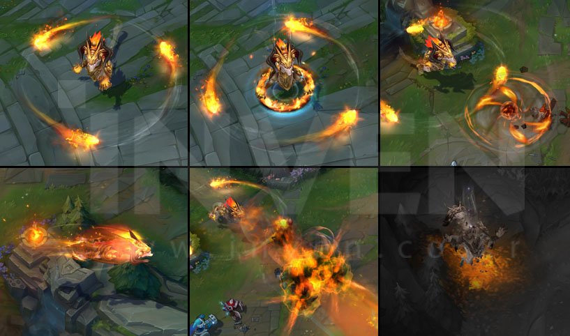 The Skies Descend: Aurelion Sol drags a giant star down from the heavens with an increased impact zone and increased damage, knocking up enemies rather than stunning them. A shockwave then spreads from the edge of the impact zone, which damages and slows the enemies it hits. Stardust increases the impact area of both Falling Star and The Skies Descend.