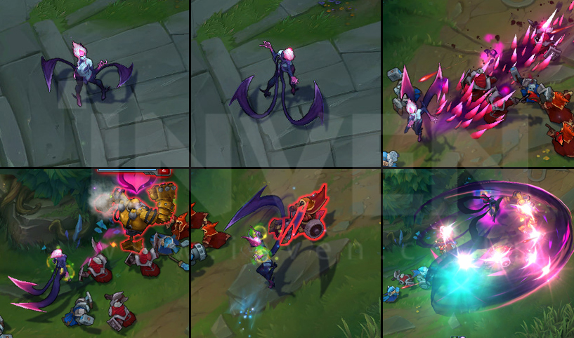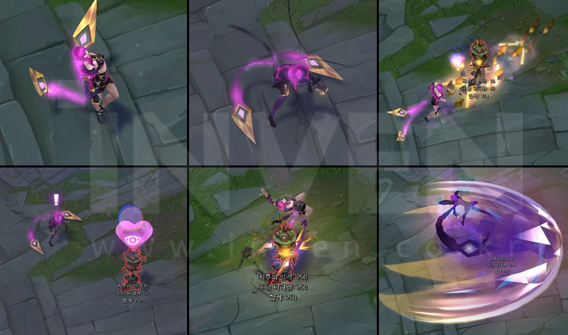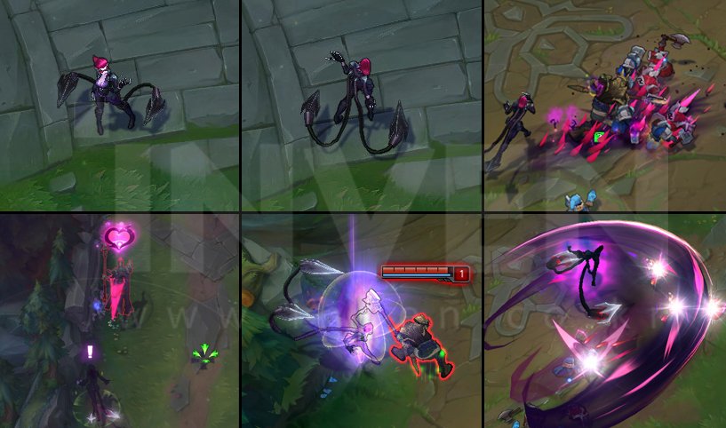 Evelynn briefly goes untargetable and decimates the area in front of her before warping backwards a long distance.