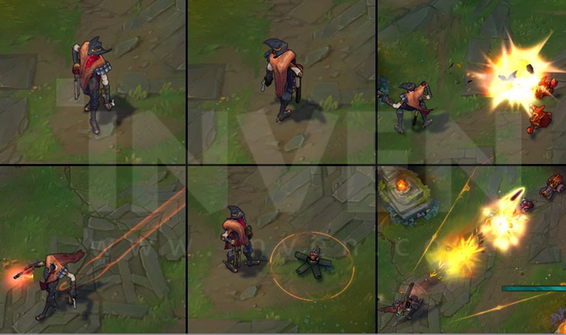 Jhin channels, transforming Whisper into a shoulder-mounted mega-cannon. It is able to fire 4 super shots at extreme range that pierce through minions and monsters, but stop on the first champion impacted. Whisper cripples enemies hit, which slows them and deals execute damage. The 4th shot is perfectly crafted, epically powerful, and guaranteed to critically strike.