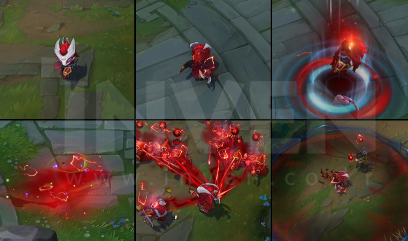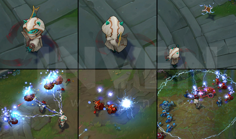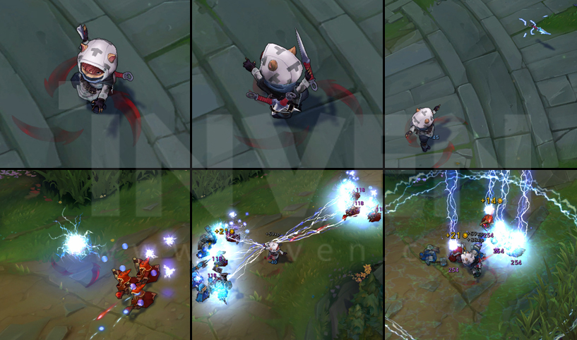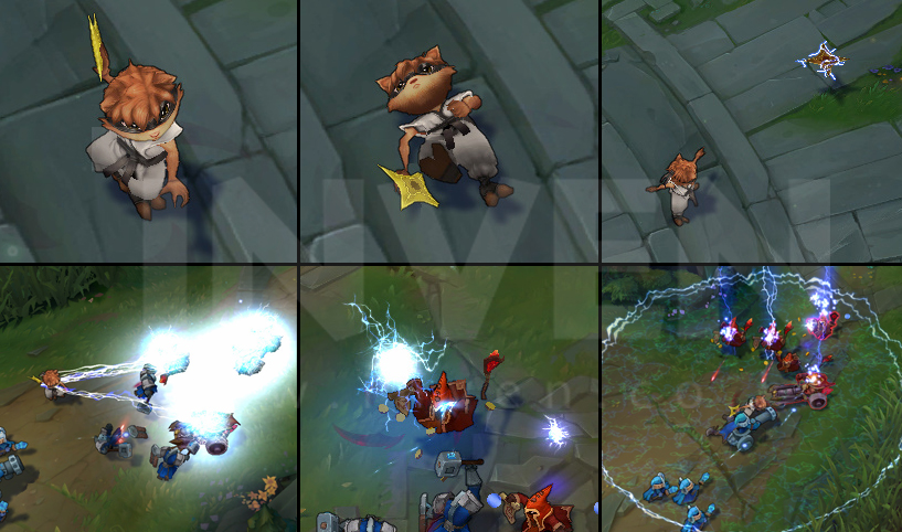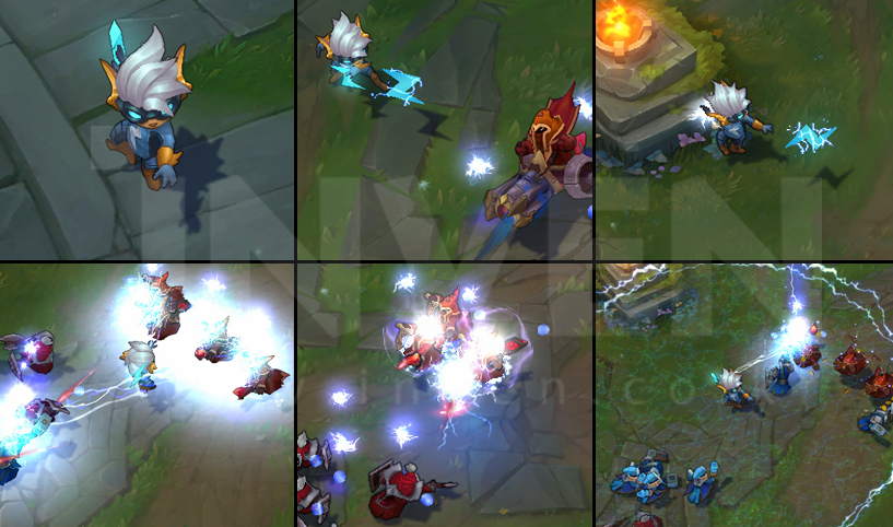 Kennen morphs into a lightning form, enabling him to pass through units and apply a Mark of the Storm. Kennen gains Move Speed when entering this form, and attack speed when leaving it.