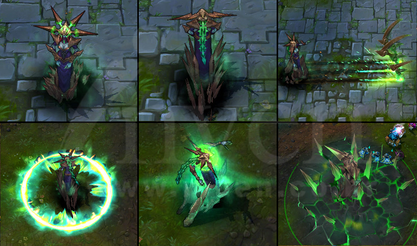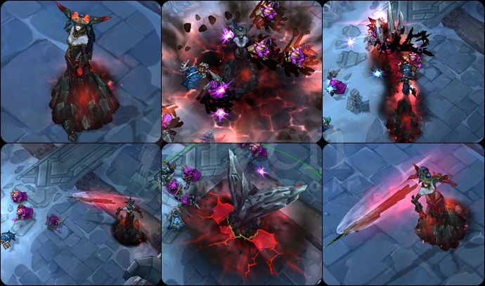 If cast on an enemy champion, the target is frozen solid, stunning it. If cast on Lissandra, she encases herself in dark ice, healing herself while becoming untargetable and invulnerable. Dark ice then emanates from the target dealing magic damage to enemies and slowing Move Speed.