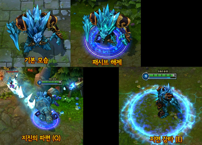 [ Passive ]Malphite is shielded by a layer of rock which absorbs damage up to 10% of his maximum Health. If Malphite has not been hit for a few seconds, this effect recharges.