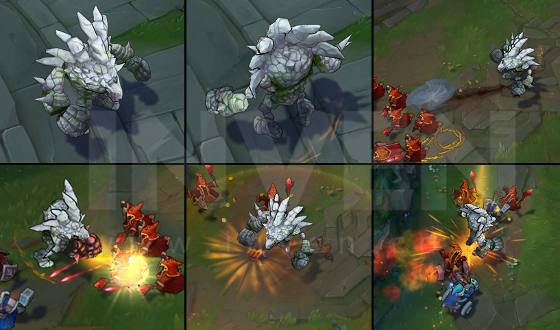 Malphite attacks with such force that it creates a sonic boom. For the next few seconds, his attacks create aftershocks in front of him.