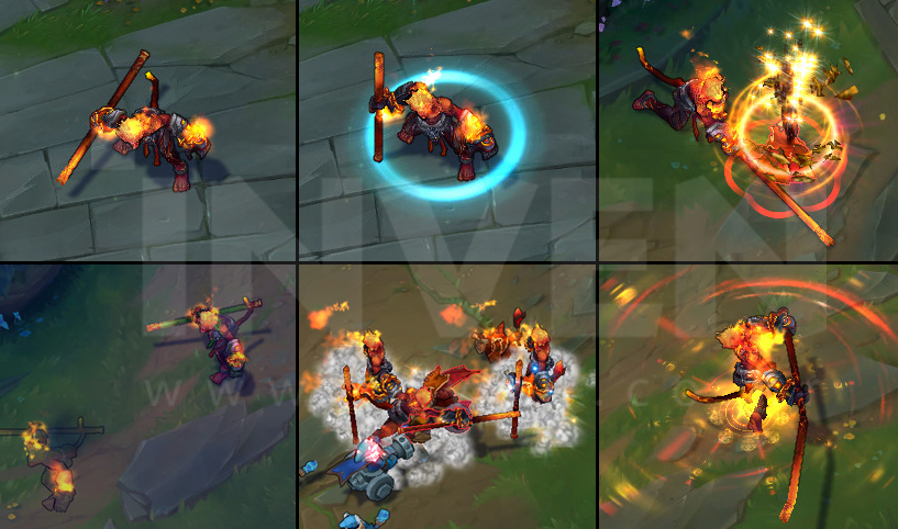 Wukong dashes to a targeted enemy and sends out images to attack enemies near his target, dealing damage to each enemy struck.
