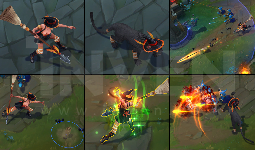 In human form, Nidalee channels the spirit of the cougar to heal her allies and imbue them with Attack Speed for a short duration. As a cougar, she claws in a direction, dealing damage to enemies in front of her.