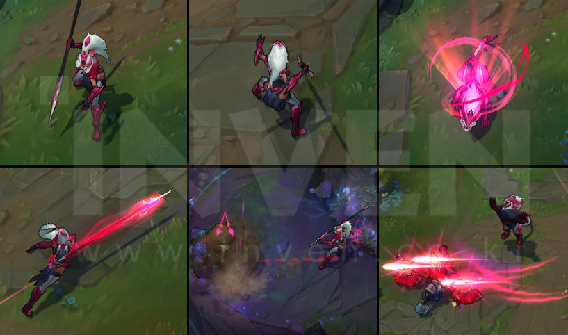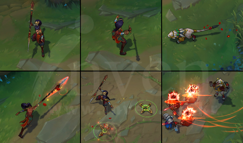 In human form, Nidalee throws a spiked javelin at her target that gains damage as it flies. As a cougar, her next attack will attempt to fatally wound her target, dealing more damage the less life they have.