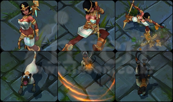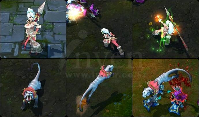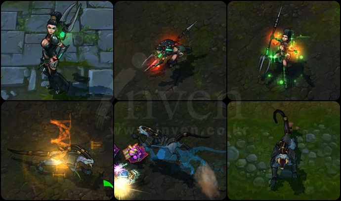 Raised in the deepest jungle, Nidalee is a master tracker who can shapeshift into a ferocious cougar at will. Neither wholly woman nor beast, she viciously defends her territory from any and all trespassers, with carefully placed traps and deft spear throws. She cripples her quarry before pouncing on them in feline form—the lucky few who survive tell tales of a wild woman with razor-sharp instincts, and even sharper claws...