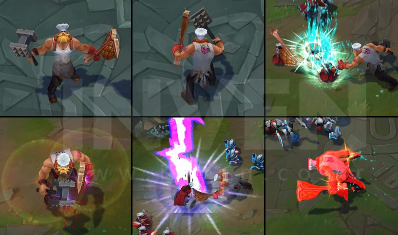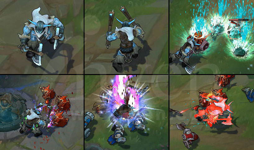 Olaf attacks with such force that it deals true damage to his target and himself, refunding the Health cost if he destroys the target.