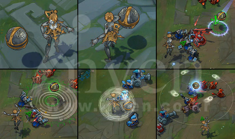 Orianna commands her Ball to attach to an allied champion, Shielding them and dealing magic damage to any enemies it passes through on the way. Additionally, the Ball grants additional Armor and Magic Resist to the champion it is attached to.