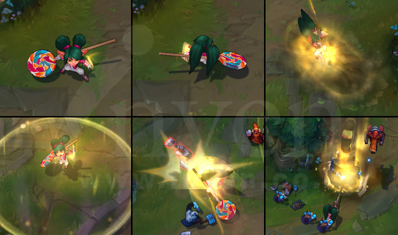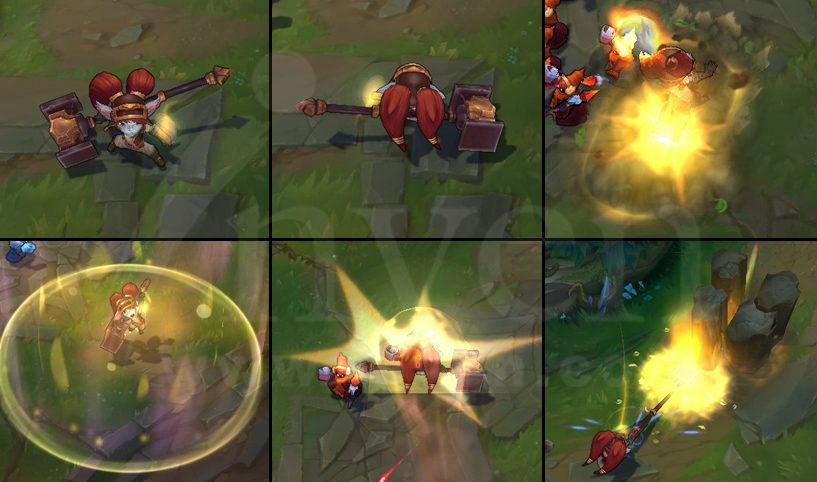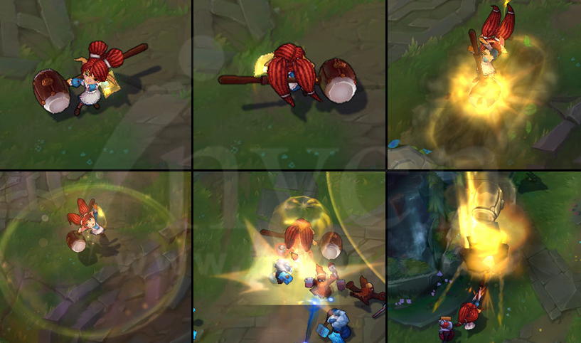 Poppy swings her hammer, dealing damage and creating a zone that will slow enemies and explode after a delay.