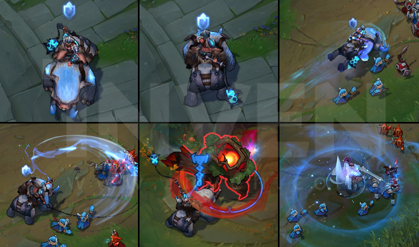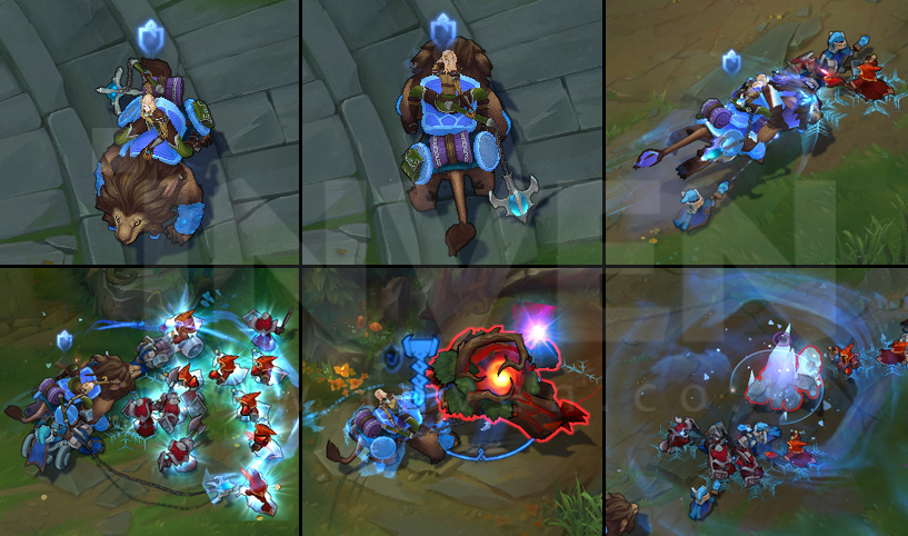 Sejuani throws her bola that freezes and stuns the first champion hit and creates an ice storm that slows other enemies.